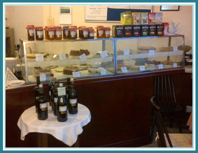 A selection of our fine Homemade Cakes, Ginger Wine, Jams and speciality Teas.